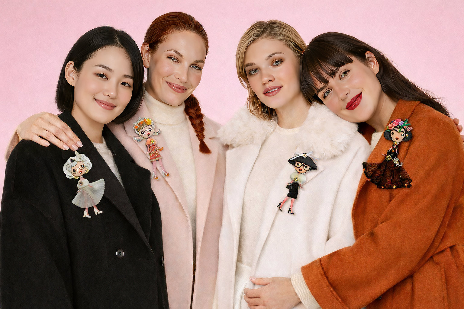 Le Maurine non seguono la moda: la interpretano. Ogni spilla nasce da un immaginario estetico che mescola haute couture, ironia e carattere. I colori, le proporzioni e le scelte stilistiche ricordano gli atelier di un tempo, ma con un linguaggio contemporaneo e riconoscibile. Indossare una Maurina significa aggiungere un elemento narrativo al proprio outfit, non un semplice decoro. È un dettaglio che cattura l’attenzione e definisce l’identità di chi la porta.